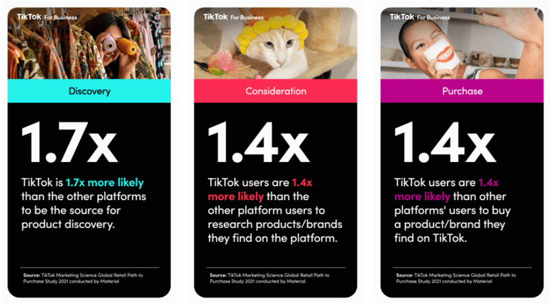 Finally, the infinite loop is accelerated by the TikTok community's eagerness to buy something as soon as they discover it. According to the study, TikTokers are 1.5 times more likely than other platform users to immediately go out and buy something they discovered on the platform.
